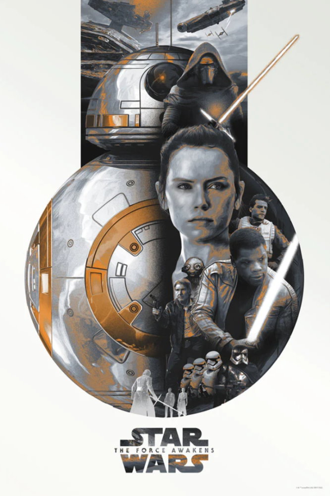 A timed release of three magnificent prints by Devin Schoeffler, this timed release lands today and for $55.00 each brings a trio of artwork from the sequel trilogy, starting with Devin’s print for The Force Awakens.