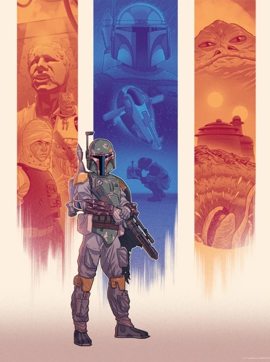 From the team at Dark Ink Art and artist Joe Hogan this is Hunter for Hire, limited to 295 hand-numbered lithographs for $60.00 and featuring the one bounty hunter who can strike fear, awe and blaster bolts into targets everywhere, Boba Fett.