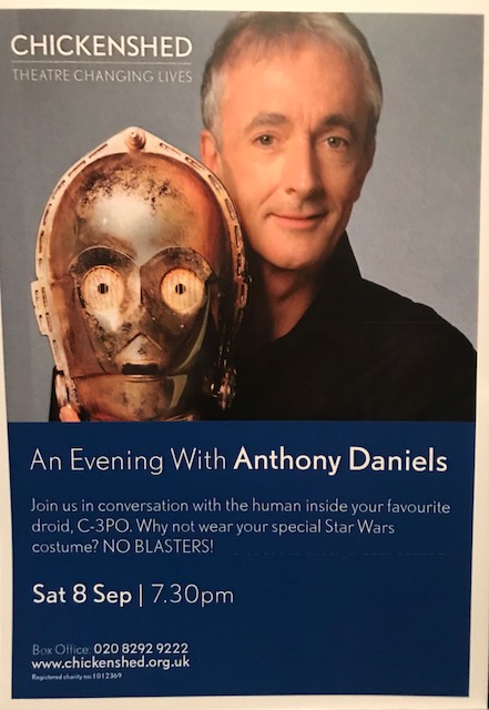 An Evening With Anthony Daniels saw the C-3PO actor reminiscing over his time as part of the Star Wars galaxy, sharing memories, telling stories and answering questions from the audience. All proceeds from the event went to the Chickenshed Theatre.