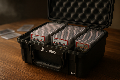 If you need maximum protection for show travel or checked luggage, Ultra PRO’s IP67 case is one of the safest carry-on options in the hobby.