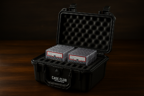 Need a grab-and-go safe for a handful of high-value slabs? Case Club’s smallest carrier measures 10.5 × 9.5 × 4.75 in and weighs about 3 lb empty, so it slips into a backpack or under-seat bag.