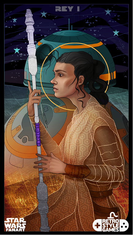 Despite the dubious popularity of the Dragon Age Inquisition, BioWare gave the game a great stylization of the game’s characters during the selection of them for adventure. In turn, the art with Rey and BB-8 was made in the same style, visually resembling Solas. Additionally, the color palette is distributed from dark, cold tones on top to warm oranges emphasizing the main character.