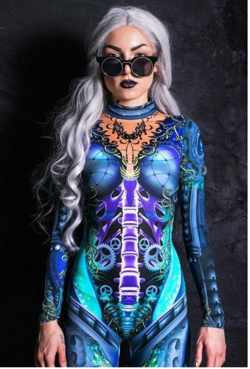 Halloween bodysuits are a thing this year – mixing a flavourful allure with a cyber majesticness. You can wear this one with knee-high boots, platform shoes, or combat models just to add up to the ultimate apparel of Halloween night.