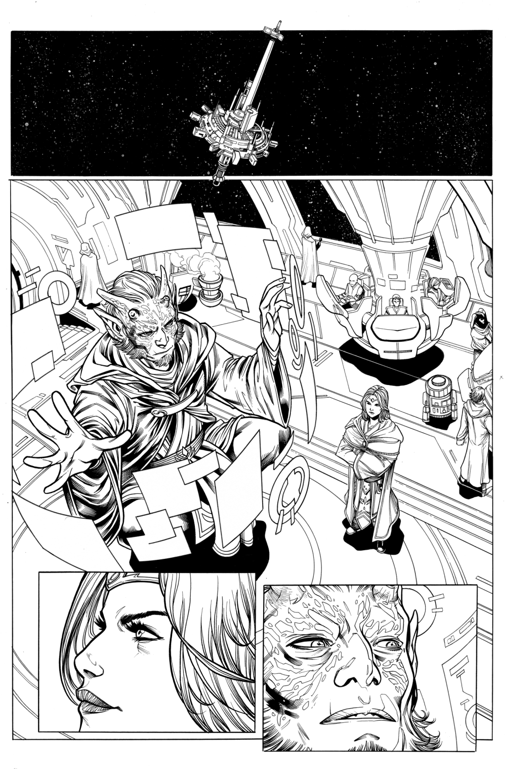 Keeve and Sskeer [the main characters in Marvel’s series] are stationed on Starlight Beacon, which is the heart of Star Wars: The High Republic. This massive space station that’s been launched in the dark zones, an area of space with not a lot of planets or anything. It’s a beacon for travelers pushing out to the frontier, there’s a Jedi temple onboard the station. The two Jedi we focus on—it’s Keeve’s story, and Sskeer’s her master—they’re part of a team, as well. That’s what’s been exciting for me. We’ve been very used to seeing masters and apprentices, but here, we see a master/apprentice right at the point where the apprentice becomes a Knight. You see them having to pull away and become independent. They become independent in this huge space station right away where there are all these other Jedi who suddenly come in, and we’re introduced to more Jedi over the first issues. They then have to figure out how to work as a team, as a unit—just like the five of us who are writing The High Republic! That’s the exciting thing, you’ve got all these Jedi in varied stages of their careers—masters, new Jedi, people who have found themselves in a position they didn’t know they were going to take—and they’re out of their comfort zone, right out on the edge of the Republic, and they have to be a beacon. That’s something they take very seriously, it weighs heavy on them: They are the light for this space. It’s been something that has a bearing on just about every other story, and you will see these characters coming in and out of the other stories, as well.