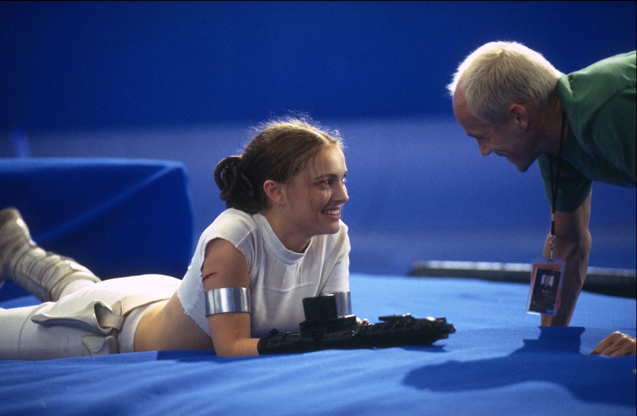 NG – I like people falling over. C-3PO right off the raised set, George up the stairs, me and Natalie bowled over by an out of control R2-D2…