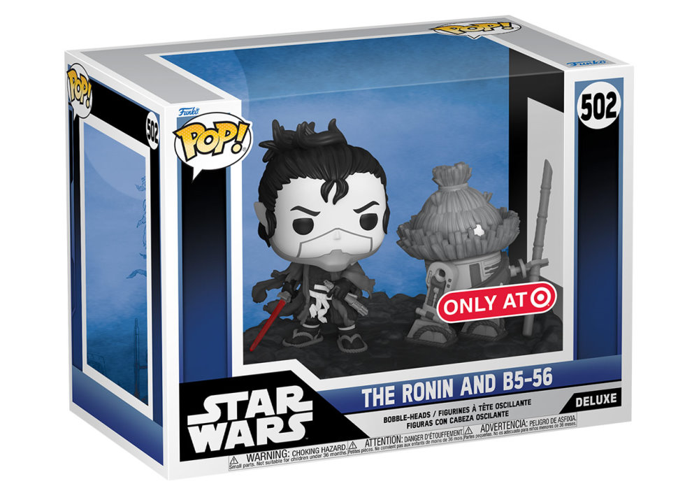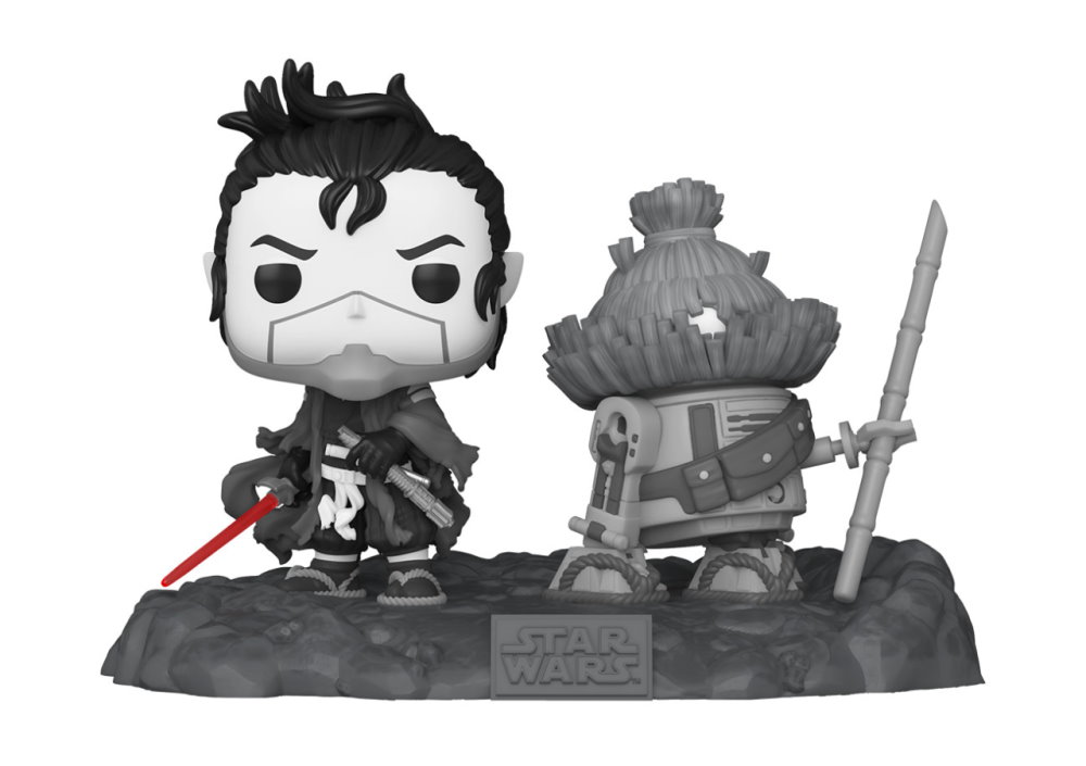 For the Pop! scene, designers have rendered the unique hand-drawn black-and-white style in an unmistakable Funko sculpt, with the Ronin’s red lightsaber adding a pop of color to the two bobbleheads.