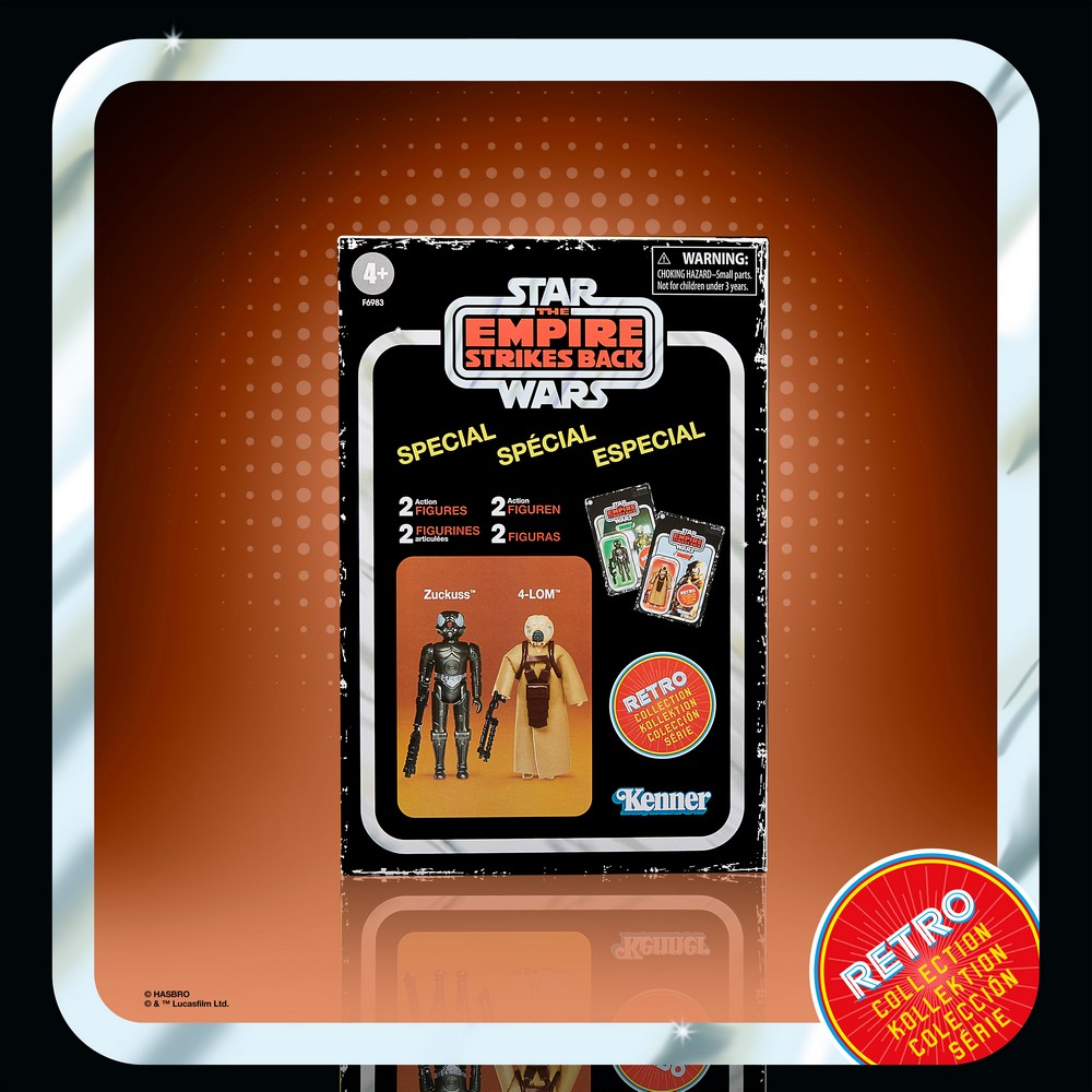 Cold, calculating droid 4-LOM and bounty hunter Zuckuss were summoned by Darth Vader to locate the Millennium Falcon and her crew in STAR WARS: THE EMPIRE STRIKES BACK – and together, they make a deadly pair. Inspired by the original 1970s Kenner STAR WARS action figures, this STAR WARS: RETRO COLLECTION 3.75-INCH 4-LOM & ZUCKUSS 2-pack is inspired by the characters’ appearance in STAR WARS: THE EMPIRE STRIKES BACK and their initial appearance in original Kenner line. When Kenner first produced the 4-LOM and Zuckuss figures, the names somehow got reversed. In this Retro Collection 2-pack, the original packaging has been recreated – switched names and all. Fans and collectors can display these figures, with multiple points of articulation and recreated original packaging, in their action figure and vehicle collection. Includes 2 figures and 2 entertainment-inspired accessories. Available for pre-order 16/11 at 6pm GMT exclusively at Amazon. Visit starwars.com for more Bring Home the Galaxy product reveals!