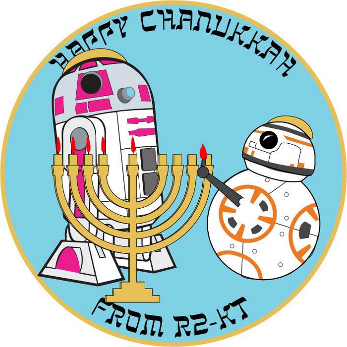 * R2-KT Hanukkah patch – First Hanukkah patch ever! KT and BB-8 light the Menorah