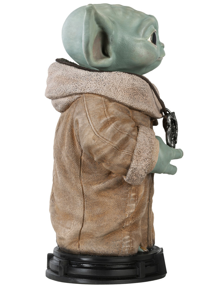 This life-sized statue of Grogu is made of resin and measures 15″ tall x 16″ wide x 8″ deep in size.