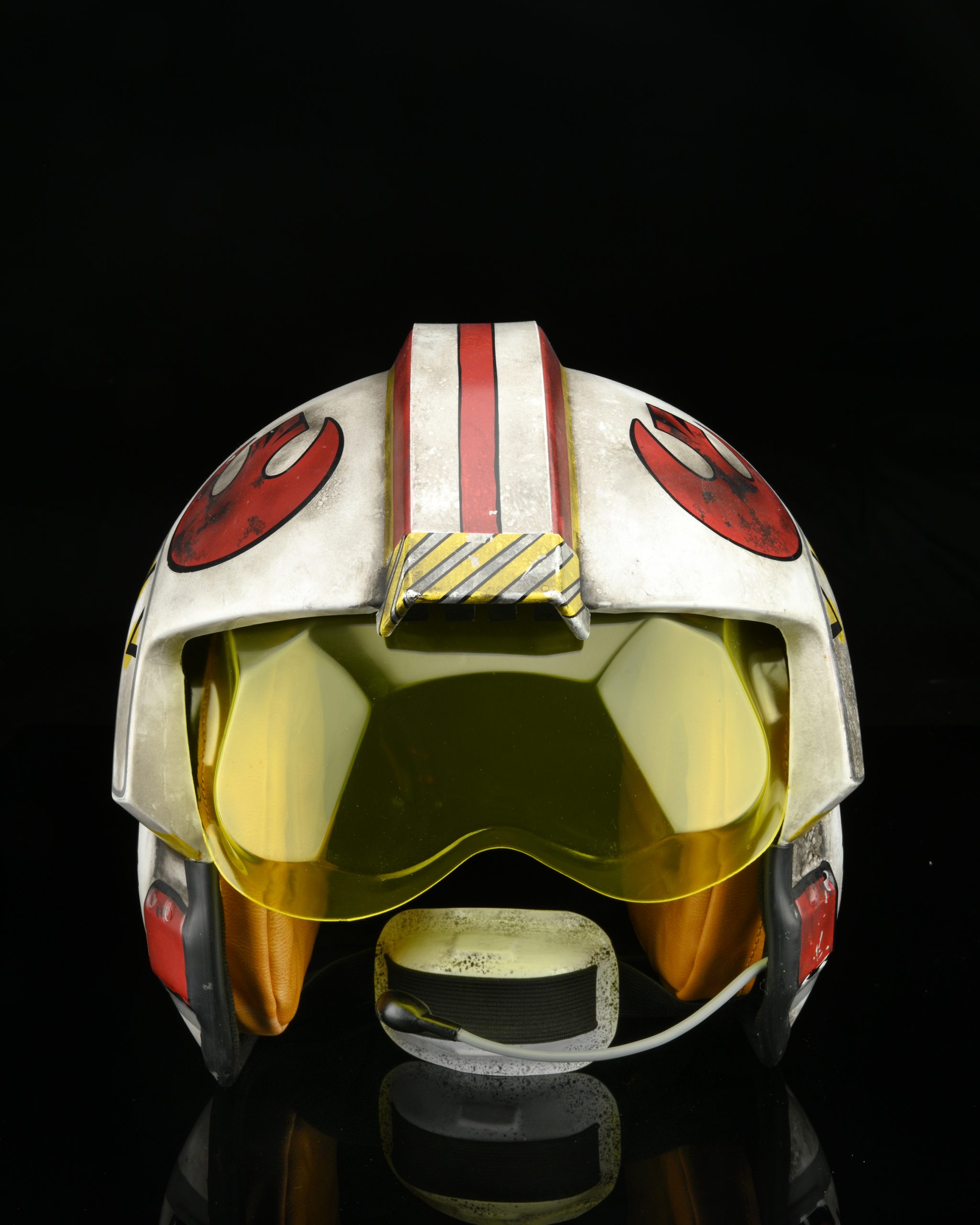 - Made of vacuum formed white ABS plastic with weathered finish and Red Squadron markings, amber visor and adjustable chin strap.