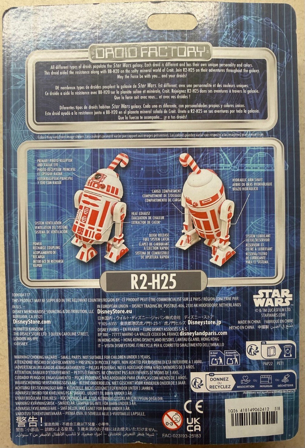 R2-H25 will make a dazzling addition to your holiday décor and look great paired with the 2020 Holiday Droid, BB-H20, as mentioned on the card back.