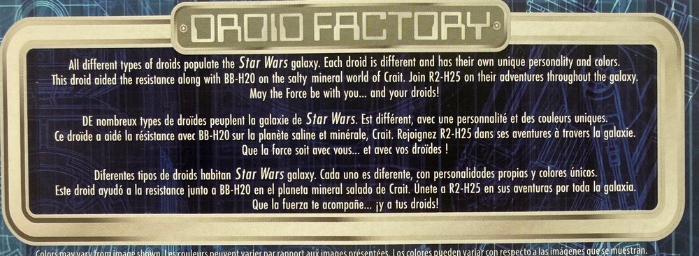 The bio on the card back reveals this droid aided the Resistance along with BB-H20 on the salty mineral world of Crait.