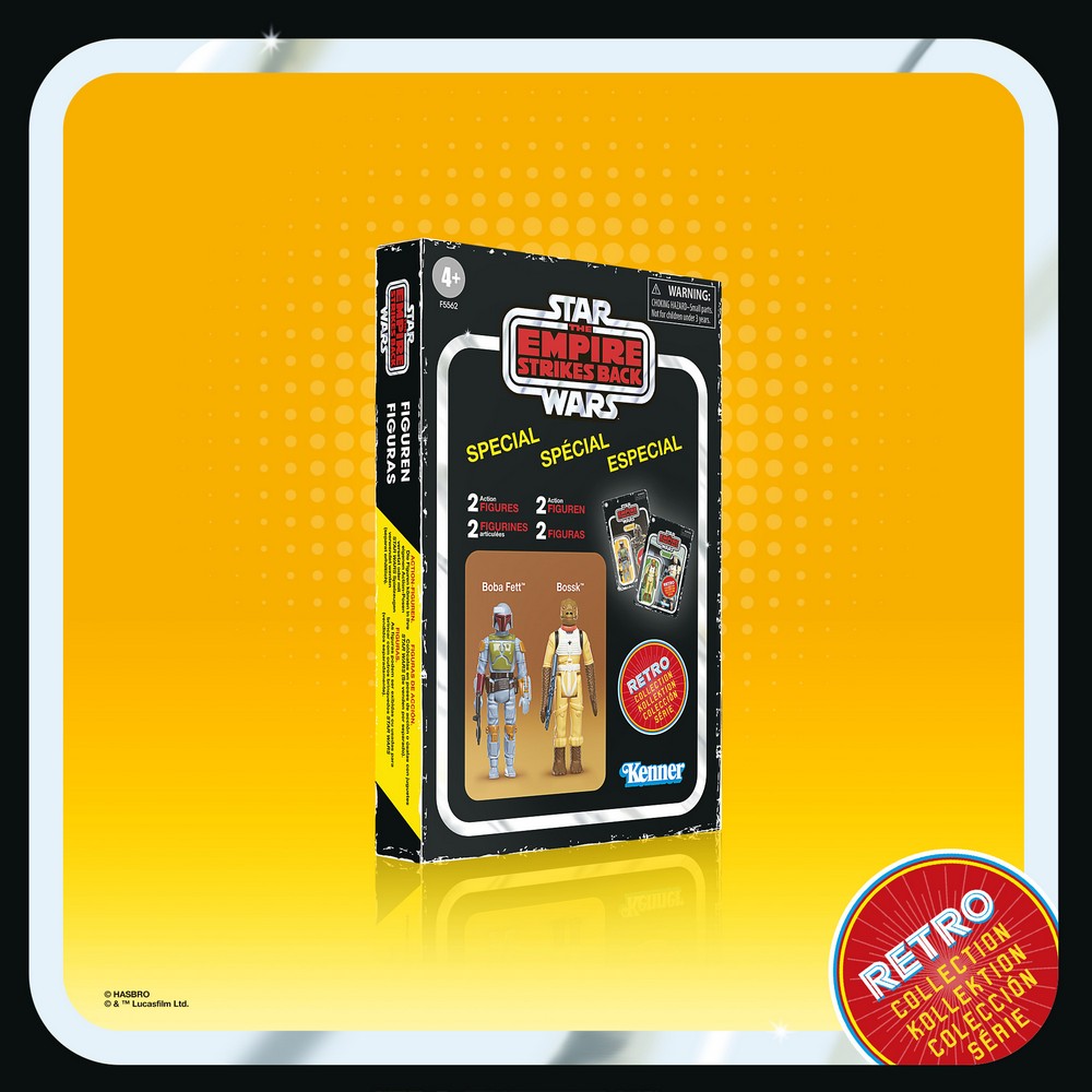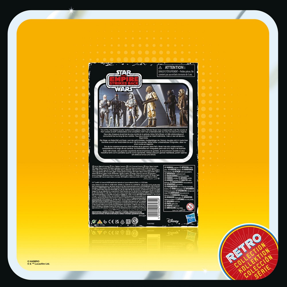 ICONIC STAR WARS CHARACTERS: This action figure 2-pack is inspired by the characters in Star Wars: The Empire Strikes Back, and includes Boba Fett & Bossk presented on individual Retro Collection cardbacks