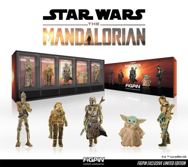 This Deluxe Box Set includes 5 gold plated characters from Season 1 of The Mandalorian and is a limited edition set that includes a special logo pin!
