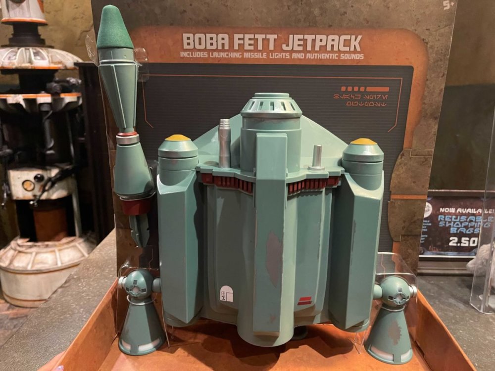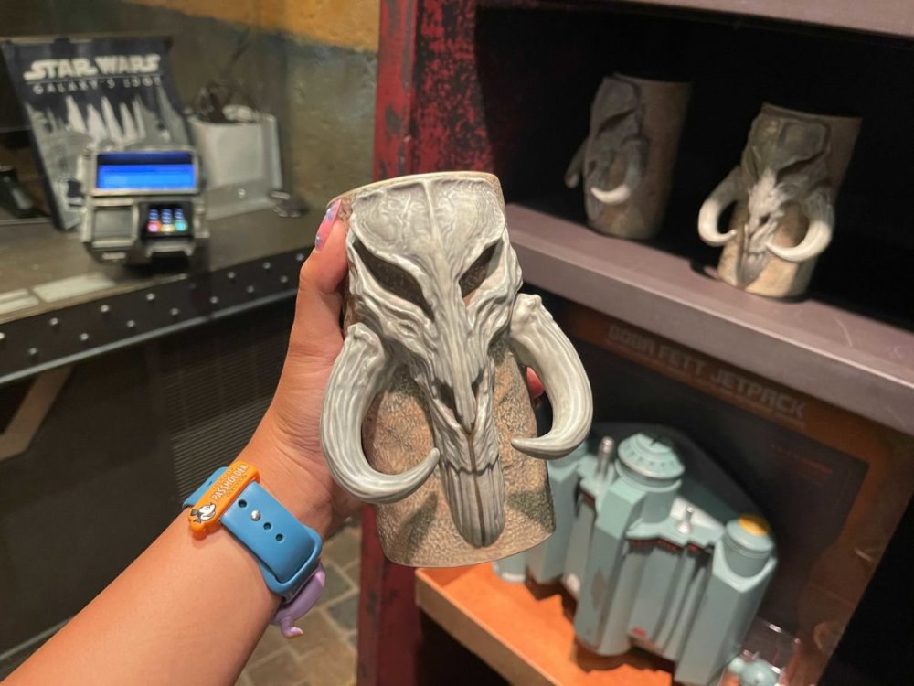Available now at Toydarian Toymaker at Galaxy’s Edge, a crate of great products joining the Lava Meercat and the Tooka-cat. These include for kids the Boba Fett Mask for $34.99, the Boba Fett Jetpack for $49.99, the Mandalorian Mythosaur Skull Mug for $24.99.