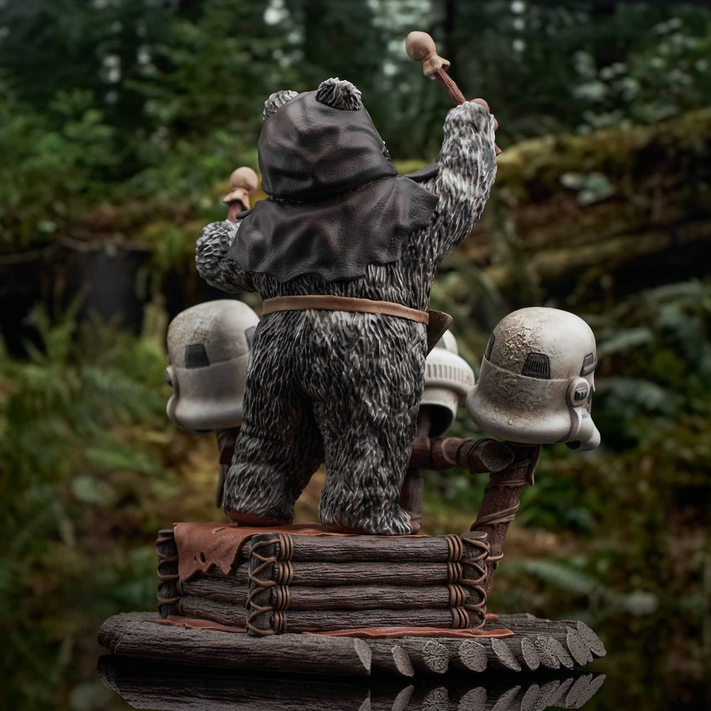 Arriving 4th quarter 2023, shipping to US / Canada / EMEA / Japan / South Korea / Brazil / Mexico / Russia / AU and limited to one order per person and just 500 copies, this is the Return of the Jedi Ewok Drummer Milestones Statue, a Web Exclusive that could quite possibly show you how Han Solo might have ended up if C-3PO hadn’t used his golden goldly magic and saved him.