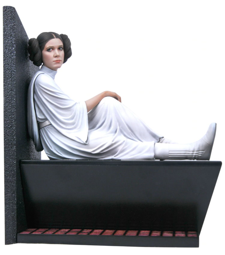 A Gentle Giant Ltd. release! Princess Leia Organa of Alderaan is held prisoner on the Death Star in this 1/6 scale statue from Gentle Giant Ltd! Wearing her classic white gown and resting on a cell bench, the princess awaits rescue in a scene straight out of Star Wars: A New Hope.