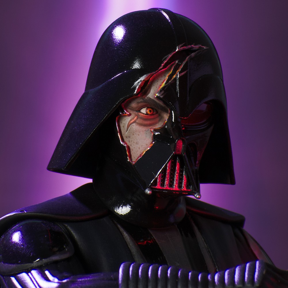 A Gentle Giant Ltd. Release and Gentle Giant, Ltd. Web Exclusive! Rebels beware! This all-new bust of Darth Vader, Dark Lord of the Sith, captures him as he appeared in the Rebels animated series, with his red-tinted lenses and red lightsaber activated. This deluxe 1:7 scale, 6-inch bust is limited to only 3,000 pieces, and comes packaged in a full-color window box with a numbered certificate of authenticity.