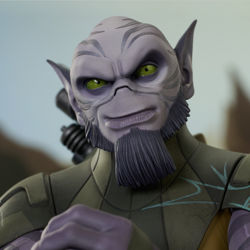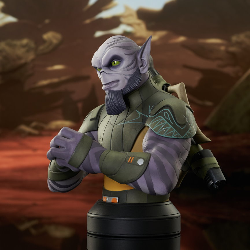 The Rebels crew just got some muscle! Joining his teammates in the GG LTD line of mini-busts, Garazeb “Zeb” Orrelios™ gets ready for a fight in this all-new 1/6 scale portrait. Cracking his knuckles with his blaster on his back, the burly Lasat™ stands approximately 6 inches tall atop a pedestal base. Limited to only 3000 pieces, he comes packaged in a full-color box with a numbered certificate of authenticity.