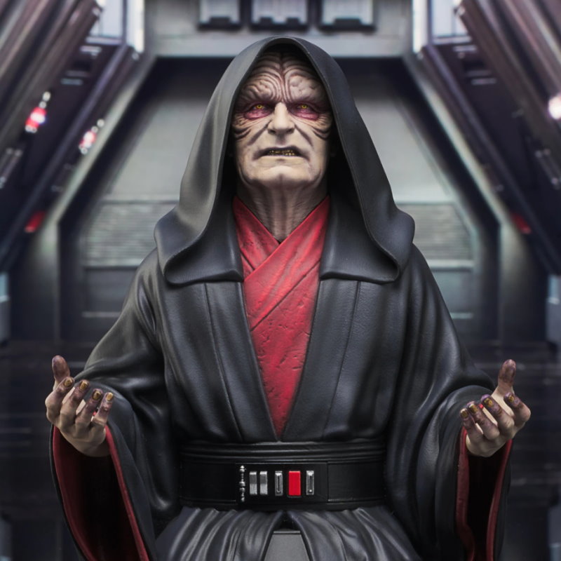 Release the dark side of the Force with our newest Star Wars: The Rise of Skywalker™ 1:6 scale mini bust, the Sith Lord, Emperor Palpatine™! The mini-bust stands at approximately 7 inches tall and is limited to only 1,500 pieces. He comes packed in a full-color box with a numbered certificate of authenticity.