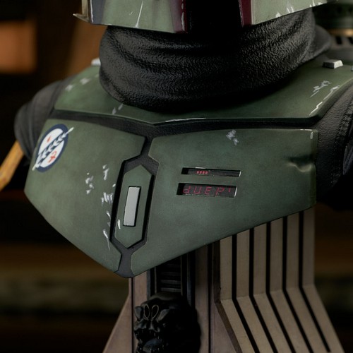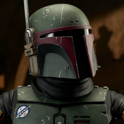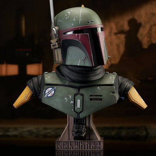 This approximately 10-inch, ½ scale bust depicts Boba Fett as he appeared on The Mandalorian, featuring new costume details and a high level of sculpting and paint application.