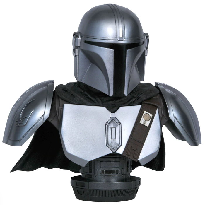 This all-new half-scale bust of the Mandalorian™ depicts the bounty hunter of few words in his polished Beskar™ armor, as seen in the hit Star Wars™ series streaming on Disney+. Measuring approximately 10 inches tall, it features detailed sculpting and paint applications. This limited edition is limited to only 1000 pieces and comes packaged in a full-color box with a numbered certificate of authenticity. Part of the Legends in 3D line!