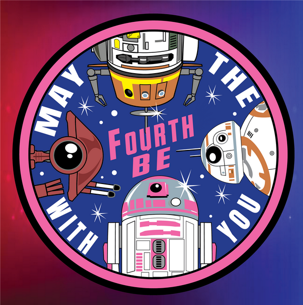 * May the Fourth Patch v8 (“Four Droids”) is round 4″ diameter and fully embroidered