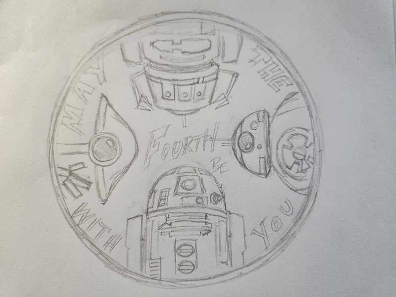 Star Wars Day is the day the entire galaxy celebrates the magic of heroes and adventures from a long time ago and far, far away. And it is one of KT’s favorite days, so we are honored to present this year’s May the Fourth patch featuring KT & her friends. This beautiful design is based on a crude sketch I made (please see attached for a laugh) that artist Bobby Henley transformed into a dazzling reality! I envisioned it to be a colorful kaleidoscope of symmetrical droid awesome-ness. We hope you will enjoy this and treasure it as part of your Star Wars collection.