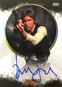 First, Harrison Ford has signed cards for Topps, including for the much-anticipated Topps Star Wars Stellar Signatures, which comes out next month. Topps Star Wars Stellar Signatures is the most premium Star Wars product Topps has ever put out.