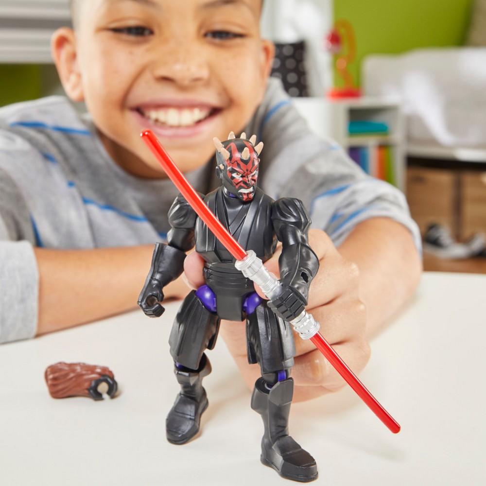 Mix and mash characters from across the galaxy to create unique and customized figures! Collectible MixMashers Star Wars figures feature parts and pieces that pull apart and mash together to create uniquely customized figures. With 16 connection points, 5-inch-scale (12 cm) MixMashers Star Wars action figures feature universal connectors for compatibility and durability across the entire line. Want even more mashed-up creations? Collect included accessories and power-up parts to create and customize figures your way! The MixMashers Star Wars Darth Maul action figure comes with a brown Chewbacca powerful hand part, as well as 2 Lightsaber™ accessories. MixMashers Star Wars action figures feature only the most iconic heroes and villains, including Chewbacca, Boba Fett, Stormtrooper, Darth Vader, and the Mandalorian & Grogu. Look for more MixMashers toys for kids to collect or give as gifts for birthdays and holidays! (Each sold separately. Subject to availability).