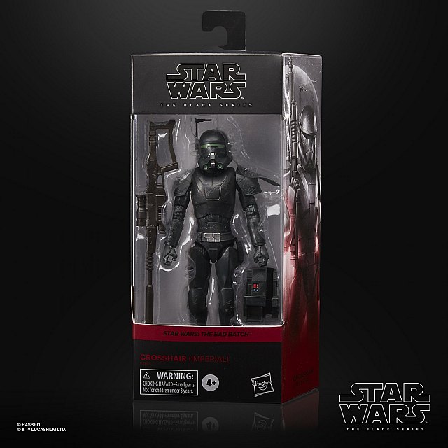 (HASBRO/Age 4 years & up/Approx. Retail Price: $26.49 / Available: Fall 2021)Fans and collectors can imagine scenes from the STAR WARS Galaxy with this premium STAR WARS: THE BLACK SERIES 6-INCH CROSSHAIR (IMPERIAL) Figure, inspired by the STAR WARS: THE BAD BATCH animated series. STAR WARS fans can display this 6-inch-scale fully articulated figure featuring poseable head, arms, and legs, as well as premium deco, in their action figure and vehicle collection. Includes figure and 2 accessories.