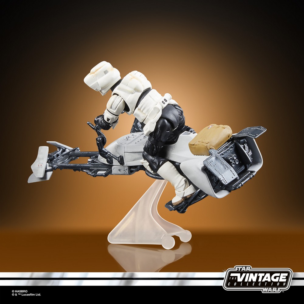 Fans can celebrate the legacy of STAR WARS, the action-and-adventure-packed space saga from a galaxy far, far away, with this premium 3.75-inch scale STAR WARS: THE VINTAGE COLLECTION SPEEDER BIKE, SCOUT TROOPER & GROGU vehicle and figure pack.