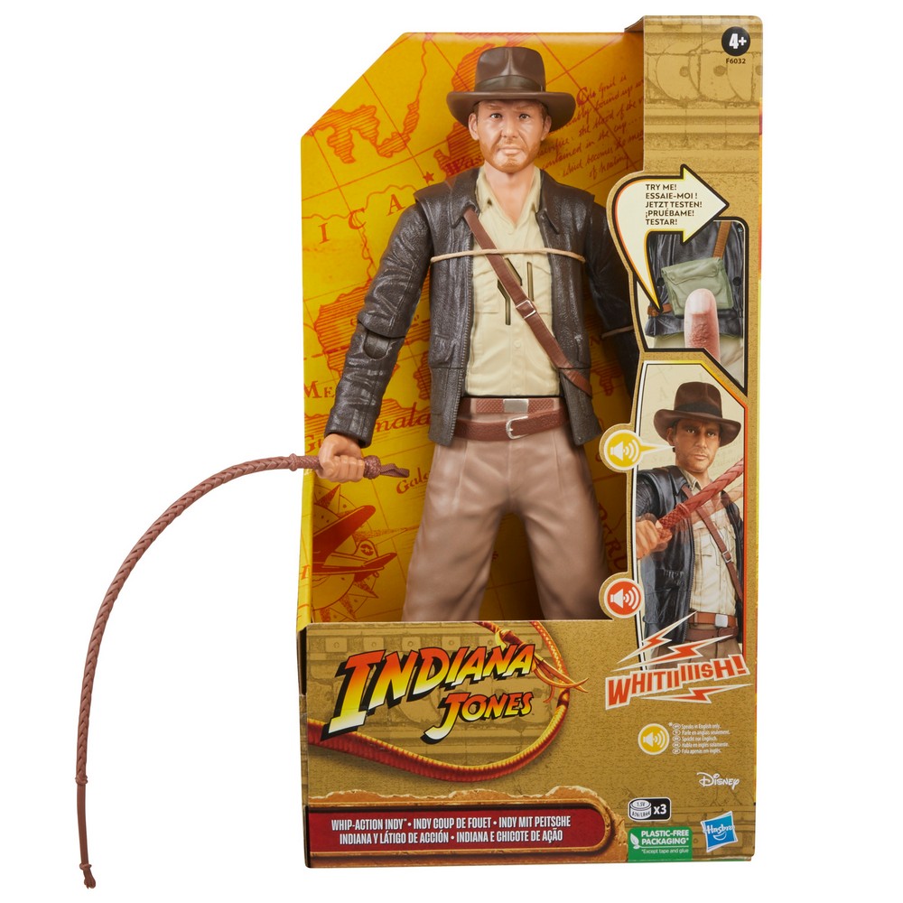 features real whip action, as well as 10+ iconic sound effects and phrases from the Indiana Jones films.