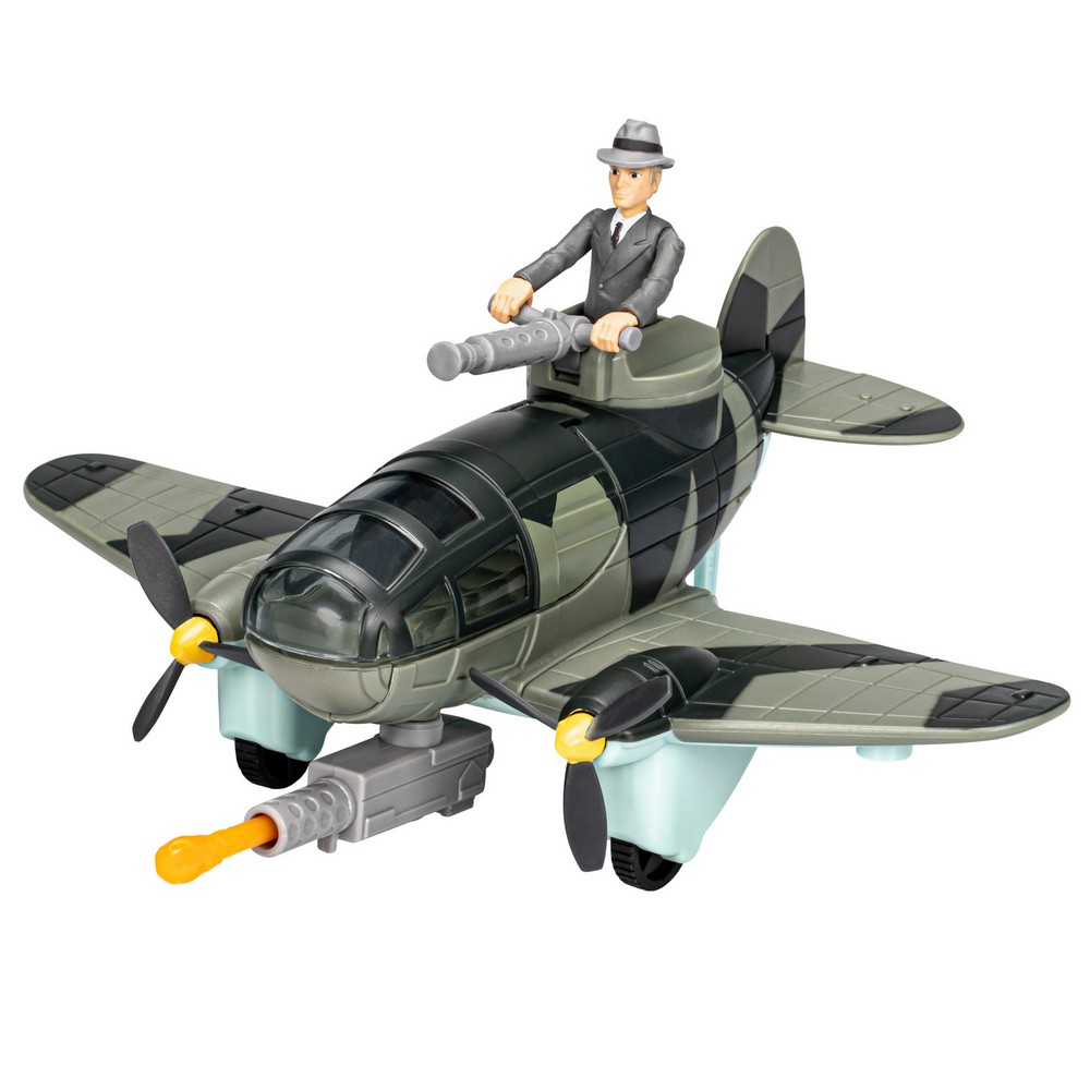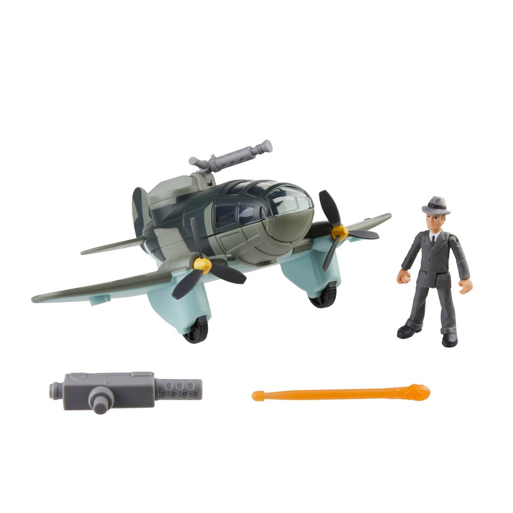 Soar into action and adventure with the Indiana Jones Worlds of Adventure Doctor Jürgen Voller with Plane figure and vehicle set! This 2.5-inch-scale Indiana Jones action figure features fully poseable arms, legs, and head, as well as design and detail inspired by the Indiana Jones entertainment. Kids ages 4 and up will love re-creating favorite moments with this Indiana Jones gift set, featuring rolling wheels, spinning propellers, opening canopy, rotating turret, and tow hook, as well as a projectile launcher for explosive fun!