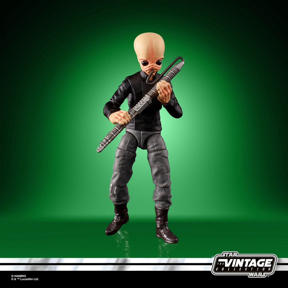 STAR WARS: THE VINTAGE COLLECTION 3.75-INCH scale classic figures and vehicles feature original vintage-inspired packaging and Kenner branding. This Star WARS: THE VINTAGE COLLECTION 3.75-INCH FIGRIN D’AN figure is inspired by the character in STAR WARS: A NEW HOPE. Figrin D’an’s is the rocking frontman for the all-Bith band “The Modal Nodes.” His deft playing of the Kloo Horn for the band earned him the nickname “Fiery” Figrin. Highly poseable with realistic detail, this 3.75-inch-scale figure can be displayed in action figure and vehicle collections. Includes 3 entertainment-inspired accessories. Available for pre-order 4/7 at 1PM ET at most major retailers.