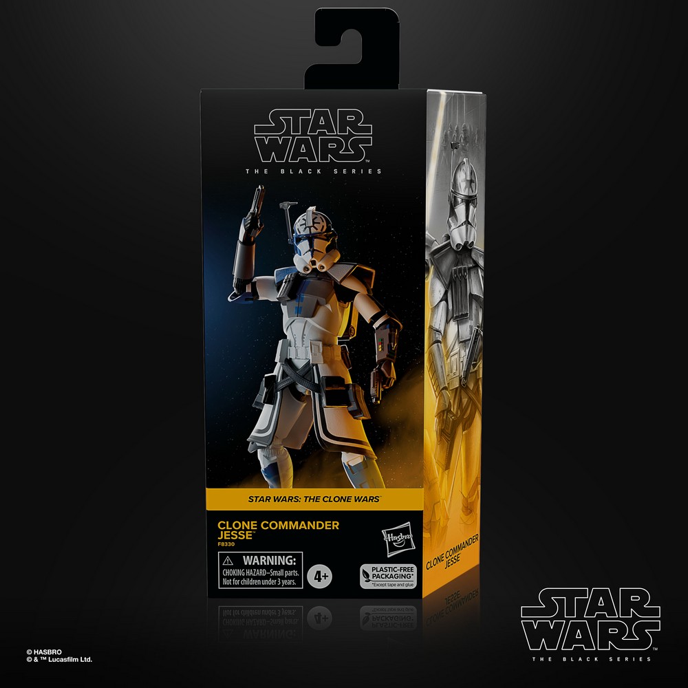 STAR WARS fans and collectors can imagine scenes from the biggest battles and missions in the STAR WARS galaxy with this CLONE COMMANDER JESSE figure from The Black Series. This premium 6-inch CLONE COMMANDER JESSE figure is inspired by the character in STAR WARS: THE CLONE WARS in time for the animated series’ 20th anniversary. Hard-fighting patriot Jesse proudly wears the Galactic Republic’s symbol on his helmet and as a face tattoo. After Order 66, however, his loyalty shifts from the Republic. Fans can display this figure which features premium detail and multiple points of articulation. Includes figure and 4 entertainment-inspired accessories including an alternate face plate.