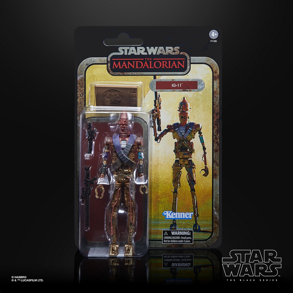 Fans and collectors can imagine scenes from the Disney Plus series THE MANDALORIAN with this premium STAR WARS: THE BLACK SERIES CREDIT COLLECTION 6-INCH IG-11 Figure. One of a series of dangerous assassin droids largely outlawed in the galaxy, IG-11 is a hired gun programmed to follow Bounty Hunters Guild protocols to the letter. As part of the STAR WARS: THE BLACK SERIES CREDIT COLLECTION this figure features multiple points of articulation, premium deco, a collectible Imperial Credit accessory, and packaging that has been treated with a weathered look inspired by the end credit images from THE MANDALORIAN, making this a great addition to any STAR WARS collection. Includes figure, 2 accessories, and Imperial Credit. Available for pre-order at GameStop.
