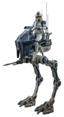 The stunningly crafted 501st Legion AT-RT figure stands at approximately 64cm tall with the battalion’s signature blue paint application and 501 marking with weathering effects, as well as an astonishing range of articulations allowing different display poses.