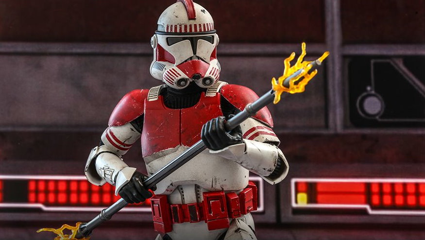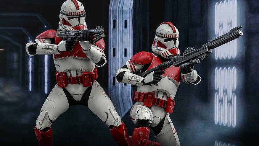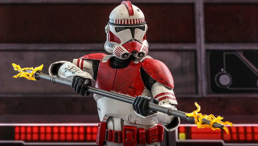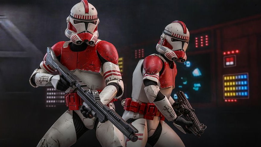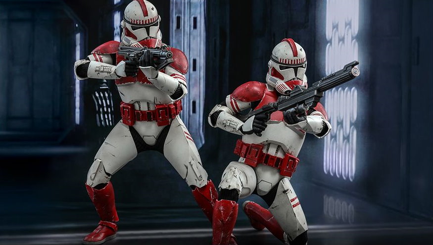 The highly detailed collectible figure features meticulously crafted and finely detailed recreation of Clone Trooper armor and helmet, Coruscant Guard’s distinctive armor color with weather effects, an assortment of weapons and a display base!