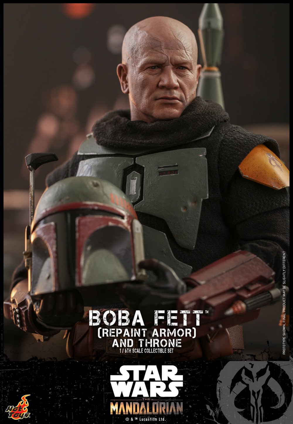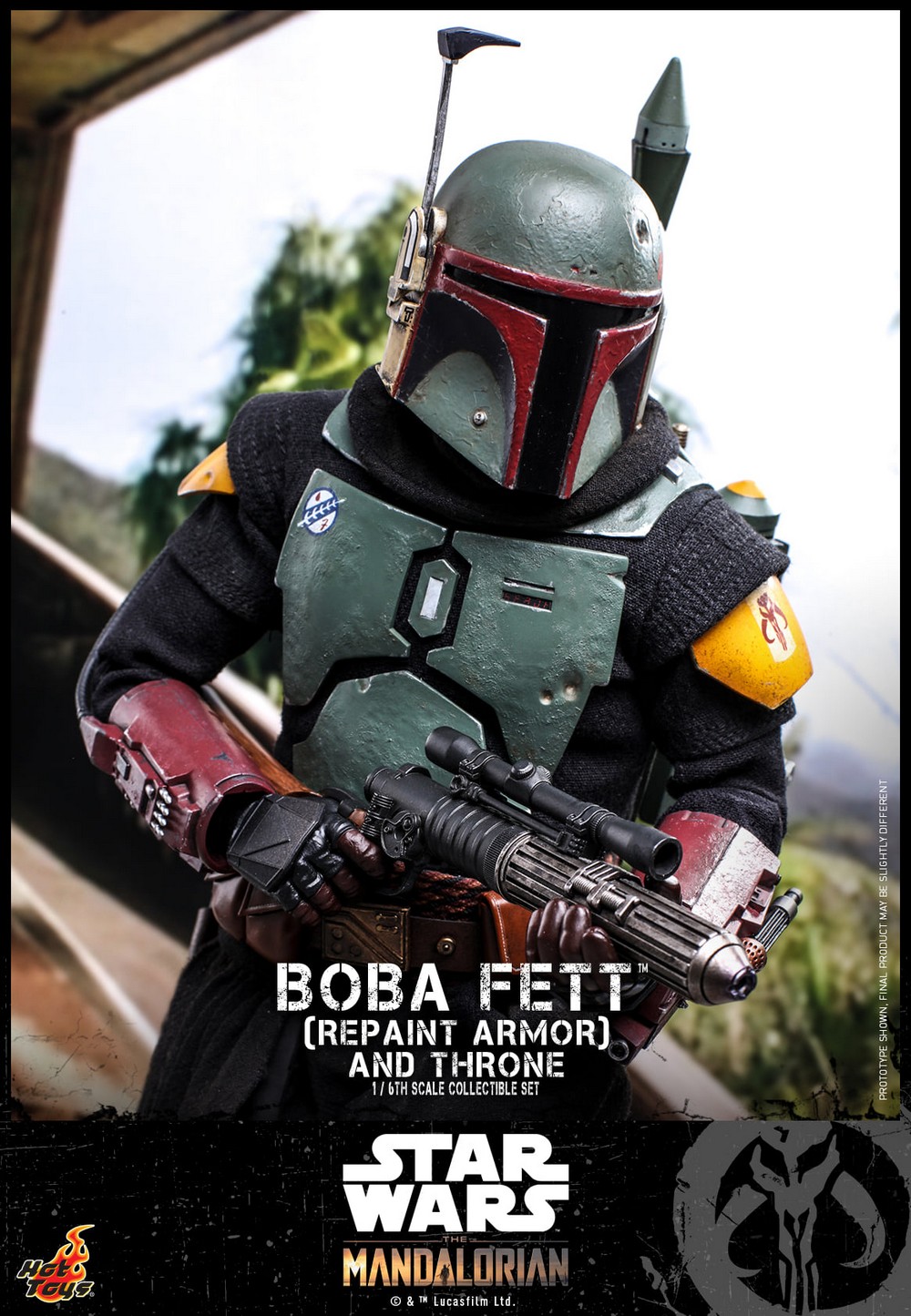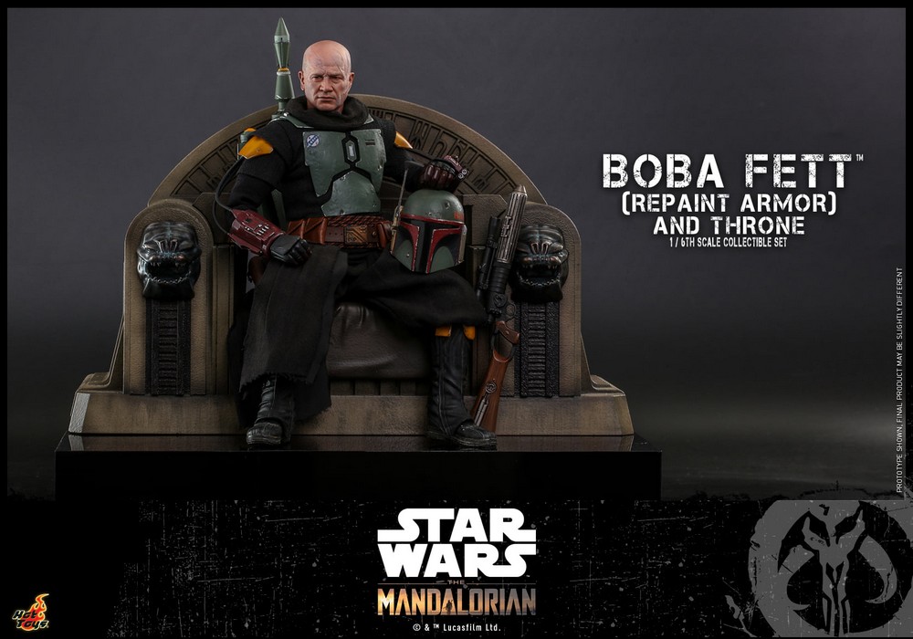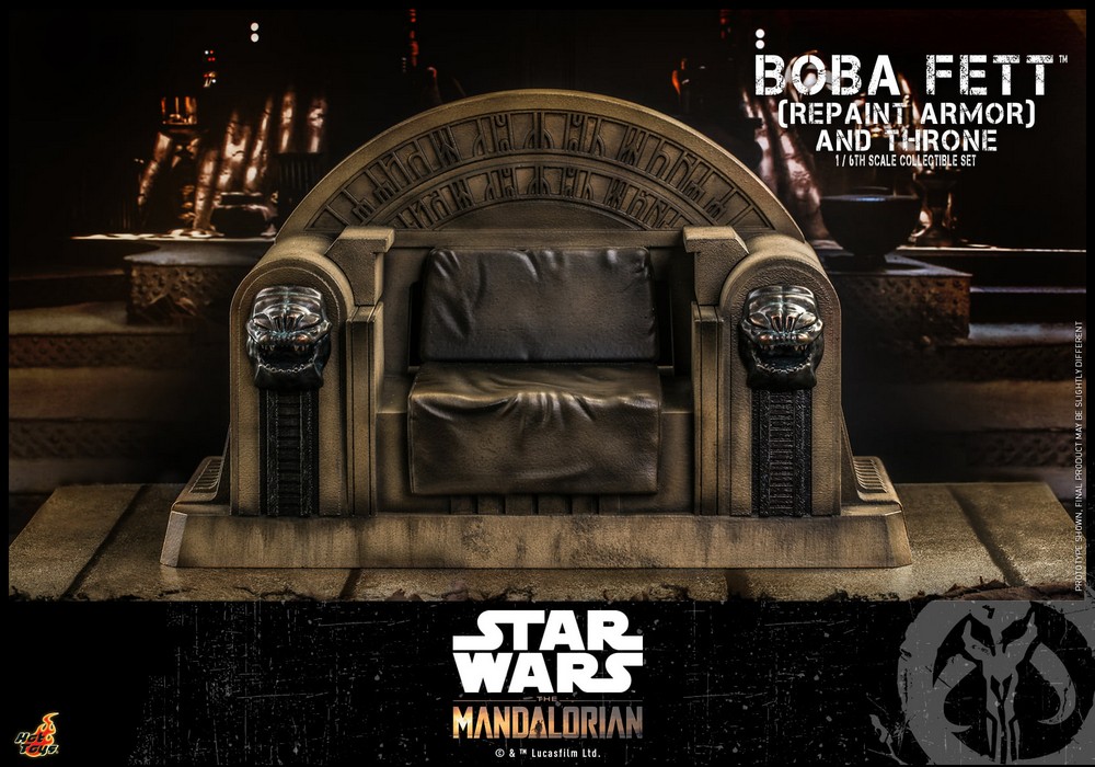 Now Hot Toys is thrilled to bring yet another incredible addition to The Mandalorian collectible series and officially present the 1/6th scale Boba Fett™ (Repaint Armor) and Throne Collectible Set!