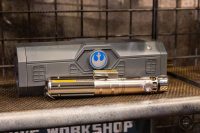 After that, the Guardians will help you assemble your custom blade. The sabers will work with AA or AAA batteries and weight will depend on what you put in your hilt. There will still be accessories to complement, such as cases to store and things you can put your saber in the belt.