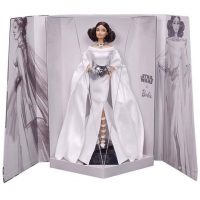 Princess Leia Organa was one of the Rebel Alliance’s greatest leaders, fearless on the battlefield and dedicated to ending the tyranny of the Empire. This collectible Star Wars™ x Barbie® doll captures Princess Leia’s iconic look in an elegant white gown with dramatic, floor-length sleeves. Details include a silvery peplum belt, cuff jewelry and an up-do inspired by her signature bun hairstyle. Star Wars™ Princess Leia x Barbie® doll makes a great gift for Star Wars™ and Barbie® fans. Includes a Star Wars™ doll stand and Certificate of Authenticity. Colors and decorations may vary.