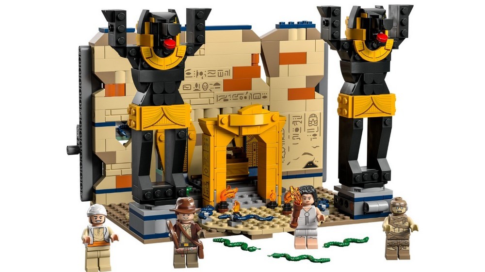 The 600-piece set is filled with surprises and details (and, naturally, snakes) to bring the scene to life, while allowing for exploration and play. The build includes elements of an underground temple, including the entrance and ancient wall, along with two towering Anubis statues — one of which topples, revealing a secret passage. But what’s waiting on the other side might be worse than slithering reptiles. (Eagle-eyed builders will also find an Easter egg pulled straight from the film.)