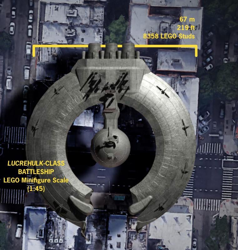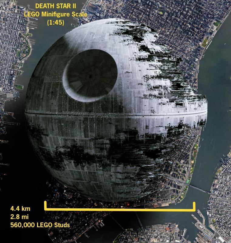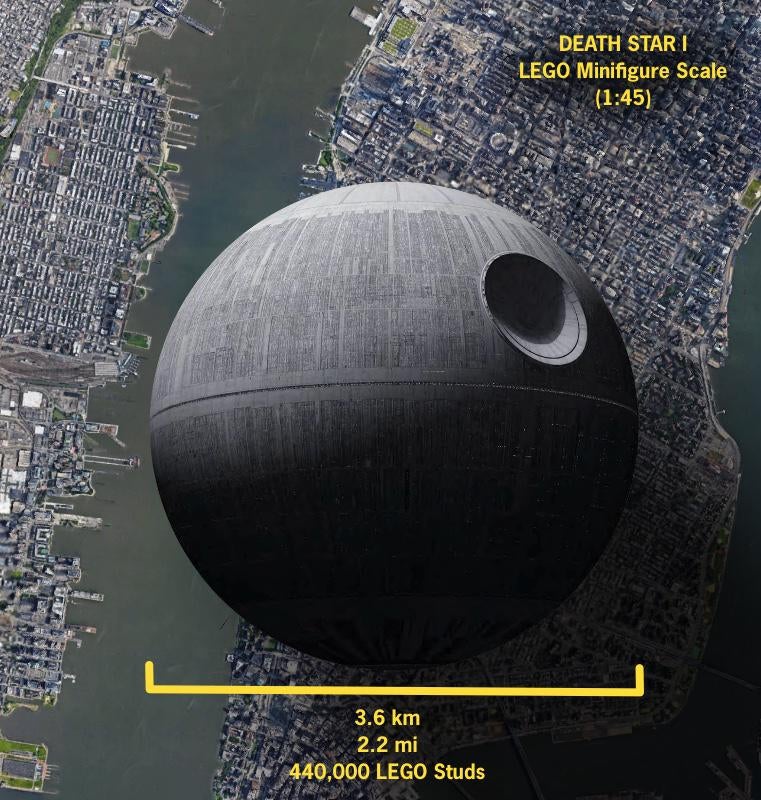 At the risk of running through numbers again: very unwieldy, given the diameter of the spherical station would stretch to approximately 560,000 studs (or 2.8 miles / 4.4 kilometres). That might just eke past 31203 World Map as the largest LEGO set of all time.