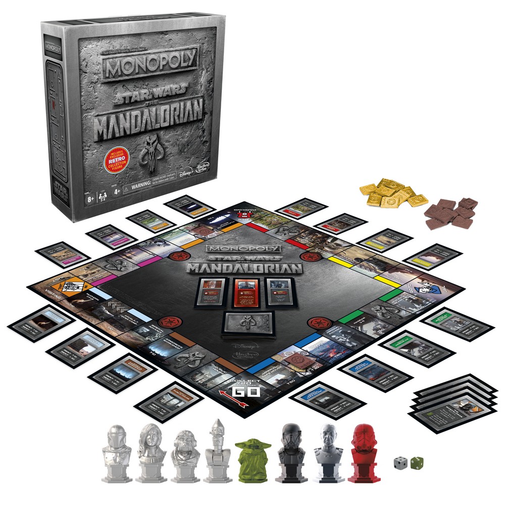 Imagine traveling around a dangerous galaxy where Imperial enemies threaten the safety of THE CHILD. Players can play as THE MANDALORIAN, CARA DUNE, IG-11, or KUIIL. THE CHILD token lets players access their character’s special ability as well as THE CHILD’S unique ability. Buy hideouts, win battles, and earn Imperial credits. The player with the most Imperial credits wins, but if an Imperial enemy gets THE CHILD, the game’s over! MONOPOLY: STAR WARS THE MANDALORIAN EDITION, inspired by THE MANDALORIAN live-action TV series on Disney Plus, includes a 3.75-inch Retro Collection REMNANT STORMTROOPER figure, with original 1980s figure design and detailing! Includes gameboard, 4 Character tokens, 1 THE CHILD token, 4 Character Ability cards, 1 THE CHILD card, 1 MOFF GIDEON token, 1 INCINERATOR STORMTROOPER token, 1 DEATH TROOPER token, 9 Imperial Enemy cards (1 MOFF GIDEON, 4 INCINERATOR STORMTROOPERS, 4 DEATH TROOPERS) 16 Hideout cards, 20 Signet cards, 75 plastic Imperial Credits, 2 dice, Retro Collection REMNANT STORMTROOPER figure, and game guide. Available exclusively at Hasbro Pulse and shopDisney.