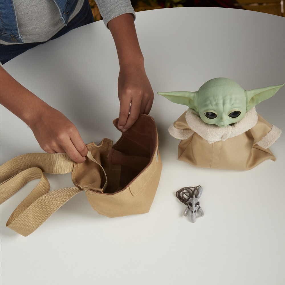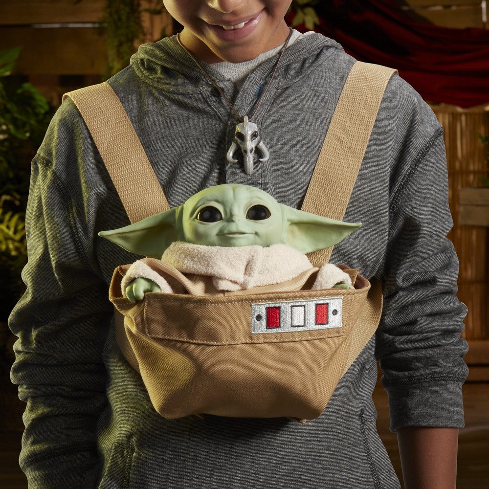 Now you can become the protector of THE CHILD, also affectionately known to fans as “BABY YODA,” with this STAR WARS THE CHILD ANIMATRONIC EDITION WITH 3-IN-1 CARRIER. Touching the top of THE CHILD’S head activates over 25 sound and motion combinations, including happy and excited sounds, giggles, babbles, and more, all while the figure’s head moves up and down, ears move back and forth, and eyes open and close. Kids can pretend to harness the power of the Force as THE CHILD toy closes its eyes, raises its arm, and sighs as if exerting a great amount of energy. The STAR WARS THE CHILD ANIMATRONIC EDITION comes with a cloth 3-in-1 carrier that can be worn on the chest or over the shoulder, and converts into a sleeping blanket. Includes figure, carrier and MANDALORIAN pendant. Available exclusively on shopDisney.