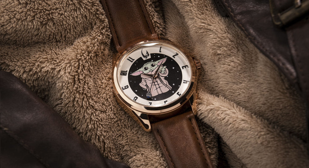 Keep the Child close as you navigate through the galaxy with a limited edition Grogu watch, including a mudhorn logo and the Razor Crest shift knob floating in the starry galaxy just out of reach. Or pick up a prestigious Seiko NH35 Japanese Automatic Ambassador. The metal gray case and dial pay homage to the lightsaber deflecting beskar steel and details such as the Mandalorian font in luminescent white, logo and Mudhorn signet on the face add the gunslinger’s aesthetic.