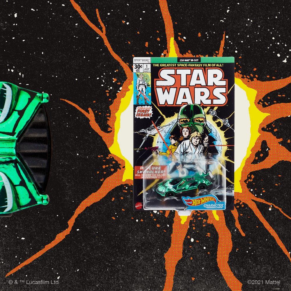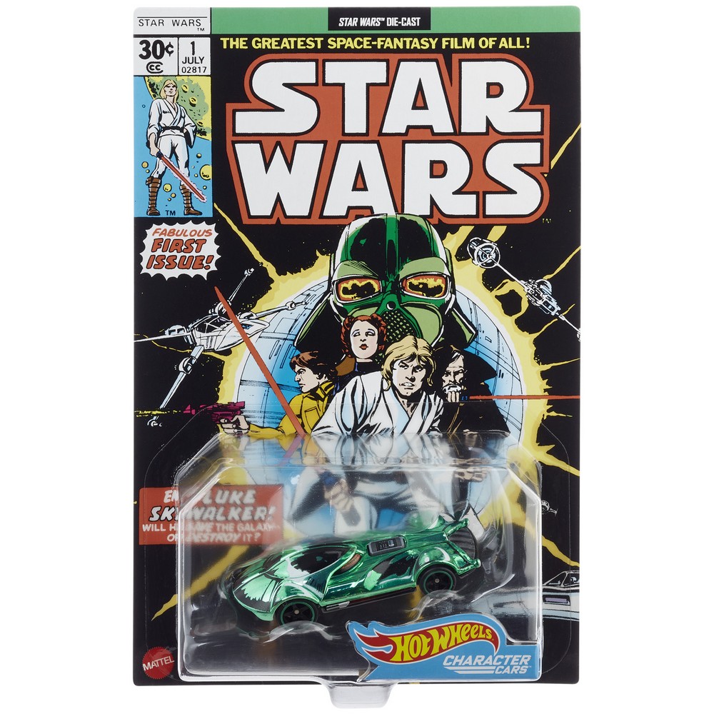 Star Wars™ fans will want to collect this Hot Wheels® Star Wars™ Green Darth Vader™ Character Car — or turn green with envy! Based on the iconic Star Wars #1 comic book cover that features the super villain in green, this unique vehicle is an instant collectible!