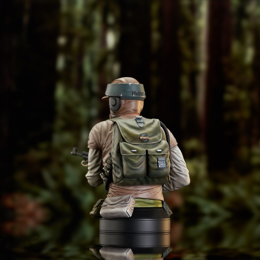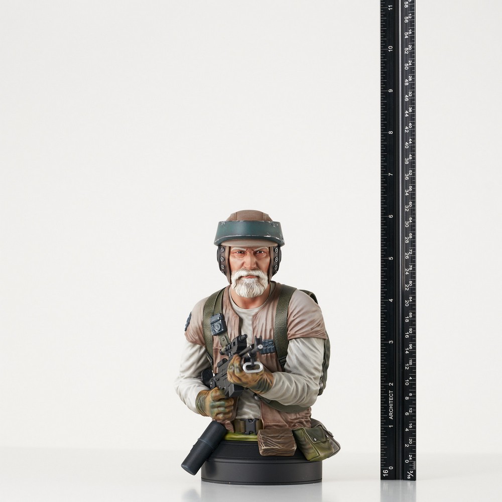 One is a 1/6 scale resin mini-bust of Nik Sant, the white-bearded Rebel Trooper who took on the forces of the Empire in Return of the Jedi. Measuring 6 inches tall atop a black pedestal base, this bust depicts the mysterious rebel with his rifle raised and features detailed sculpting and paint applications. Limited to 1,000 pieces, it comes packaged in a full-color box with a numbered certificate of authenticity.
