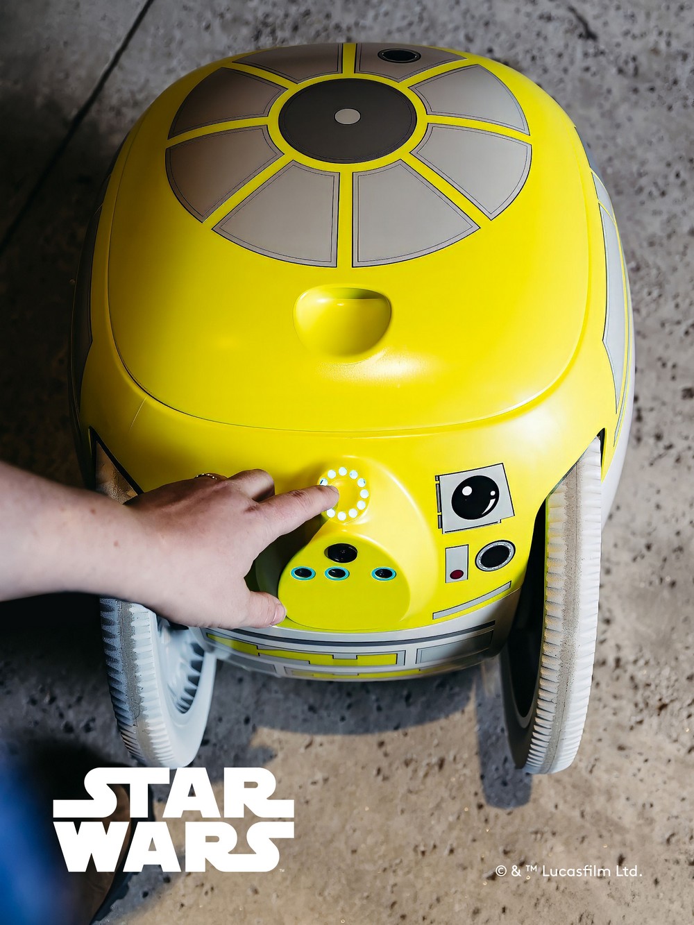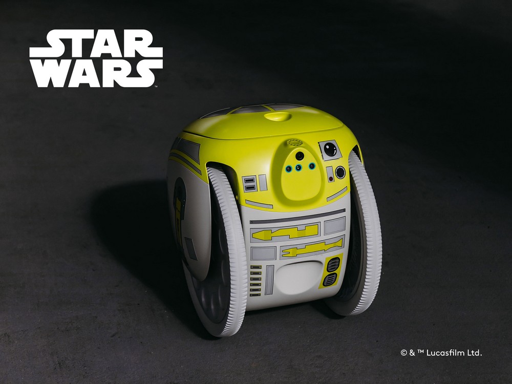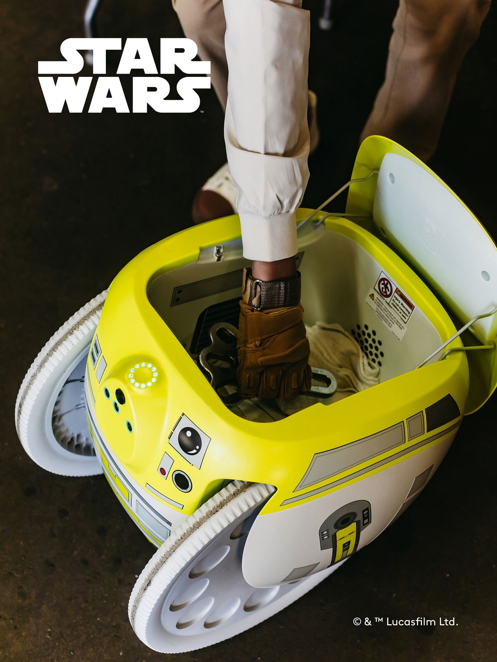 Hours of research and innovation created G1T4-M1N1, but for consumers it operates with a simple push of a button. Your astromech-inspired companion then follows its leader autonomously, navigating surroundings with pedestrian etiquette, politely and intuitively through its surroundings like a human. Designed in collaboration with Disney and Lucasfilm Ltd., it features: